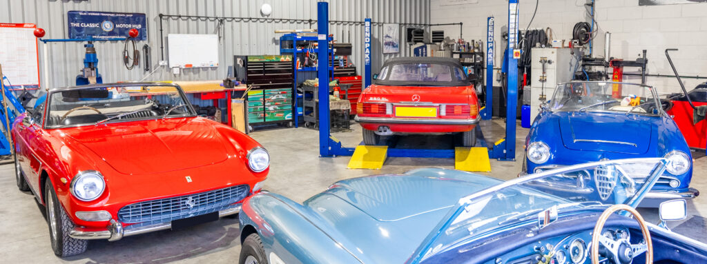 At The Classic Motor Hub, our fully equipped workshop features three ramps and offers a comprehensive range of services carried out by experienced technicians.